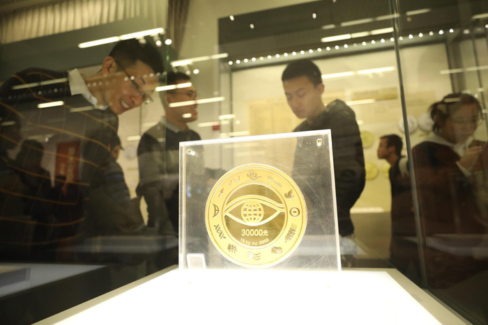 展示的面值三万元的“千年纪念币”。新京报记者 王飞 摄