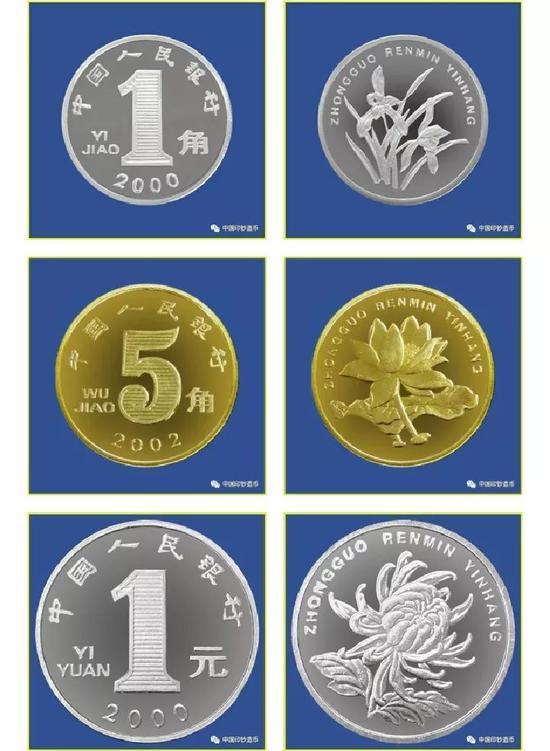 其实,在第五套人民币硬币上,一角、五角、一元三种面额的硬币也同样对应三种花卉,你们知道是哪三种么?分别是兰花、荷花和菊花哟。更重要的是,“中国人民银行”字样首次出现在这套人民币硬币上。
