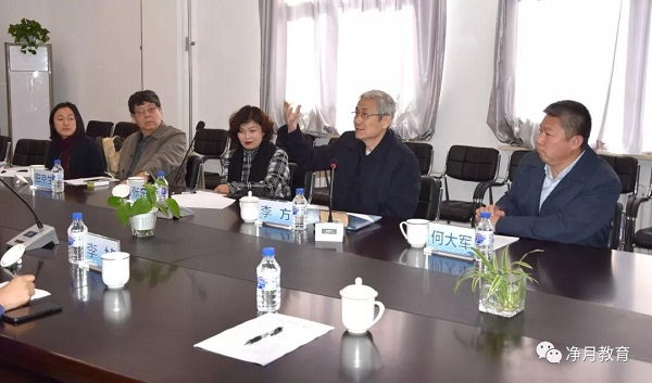 26日下午,视察组一行在净月华岳学校召开了净月教改实验区中期工作会议,现场听取了净月高新区教育局、新优教育集团负责人,分别围绕“快速城市化背景下的义务教育优质均衡发展策略探究”、什么是委托管理、怎样做的委托管理以及取得效果等方面的汇报。