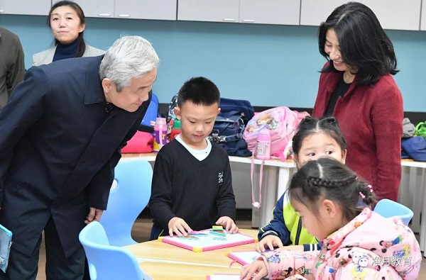 玉潭小学是净月区一所普通农村小学,也是首批由新优教育集团短期委托管理的学校。27日上午,视察组对学校校园文化进行了参观,走进了学习共同体模式下的课堂,一起聆听了一节生动精彩的语文课。现场听取了玉潭小学校长围绕“办老百姓家门口的新优质学校”为主题的汇报,各位专家对玉潭小学“破茧化蝶、快乐成长”的办学理念和“每天进步一点点”校训给予了高度评价,从学校文化建设和学生阳光活泼的表现中看到学校快速发展的印记和师生健康阳光的生机活力,认为这是一所能够释放学生天性,给予每一名孩子无限快乐可能的学校。