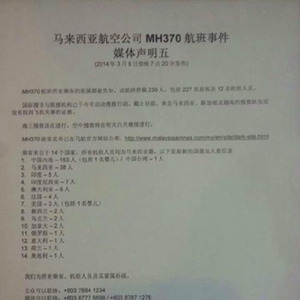 3月9日,马航发布消息,公布了最新的乘客信息。