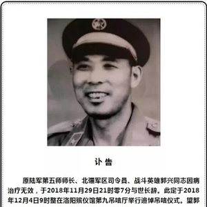 中国军网11月30日消息,11月29日21时7分,河南省军区洛阳第三干休所离休干部郭兴走了。