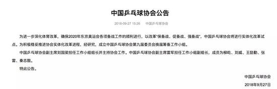 此前9月27日,中国乒协官网发布公告