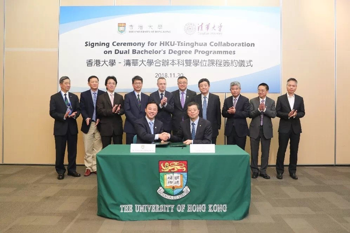 新京报快讯(记者 王俊)据清华大学官方微信,11月30日,清华大学与香港大学签署合作意向书,宣布两校将合办本科双学位项目,推出四年制双学士学位课程。