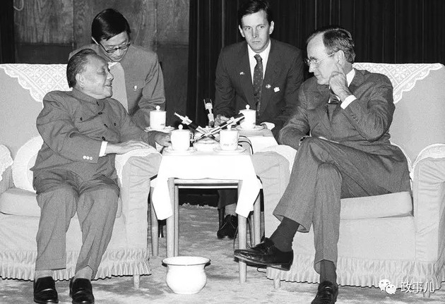 1982年5月,当中美关系因美国向台湾出售武器而面临危机时,老布什以美国副总统身份访华,他与邓小平单独会谈了一个小时,终于打破僵局,为中美最终达成“八·一七”公报铺平了道路。