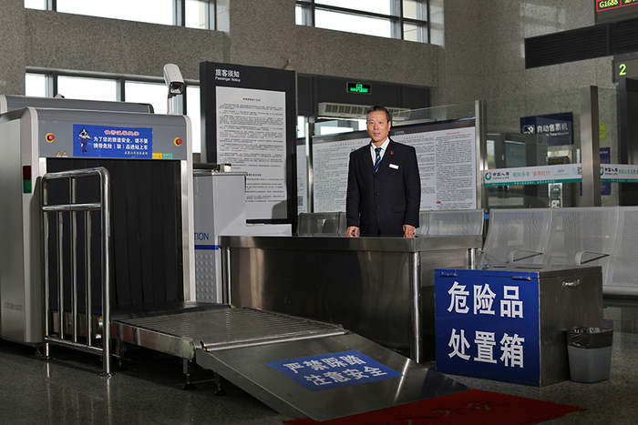 11月23日,卢剑在五府山高铁站内。他已在铁路系统工作37年,五府山站通车后在这里工作至今。 新京报记者 王飞 摄
