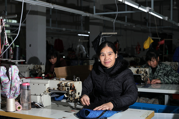 11月23日,女工陈青花在镇上的工厂里工作。高铁开通后,她重新回乡,结束了20余年的外出务工生涯。 新京报记者 王飞 摄