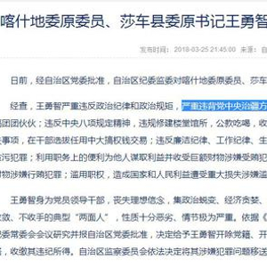 最近,新疆维吾尔自治区纪委书记杨鑫刊文提到了一个落马官员——喀什地委原委员、莎车县委原书记王勇智。杨鑫提到,王勇智“在落实党中央治疆方略中阳奉阴违”。