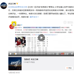 12月2日,兰州城关区教育局公开表彰100名优秀家长,这百名家长还将分批走进校园,与学生、家长们交流。