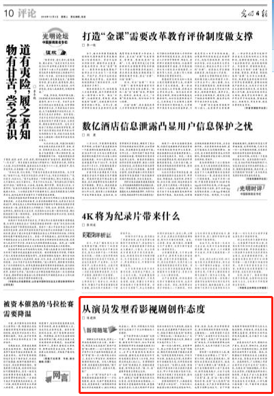 原标题:光明日报谈影视剧创作态度:男战士打发胶、女兵皮肤光洁?