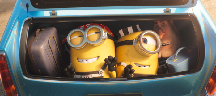 小黄人藏在汽车后备箱偷笑。片方供图