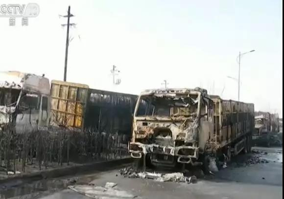 孙广宇:这次事故现场比较特殊,事故企业没有大的破坏,但是外边的公共区域就是310省道和对面的工厂,反而破坏严重,实际上这次事故是化工企业风险外溢造成的影响公共安全的这么一个事故,跟其它原来只在发生在企业内部造成人员伤亡或者损坏企业财产,这种一般的事故不太一样,所以现场这个情况也是比较非常惨烈的。