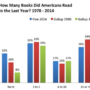 越来越多美国人不爱读书了。据《大西洋月刊》报道,在1978年,盖洛普咨询公司的调查发现,42%的美国成年人在过去一年中读过11本或更多的书,而在2014年皮尤研究中心调查数据里,这一人数下降到28%,而一本书都没有读过的人从8%上涨到了23%。