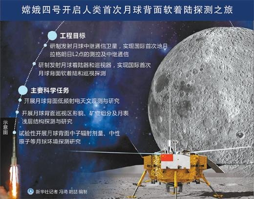 据了解,嫦娥四号任务的工程目标,一是研制发射月球中继通信卫星,实现国际首次地月拉格朗日L2点的测控及中继通信;二是研制发射月球着陆器和巡视器,实现国际首次月球背面软着陆和巡视探测。