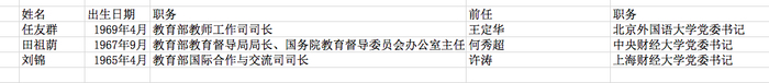 原标题:教育部三司局易人 均为“65后”