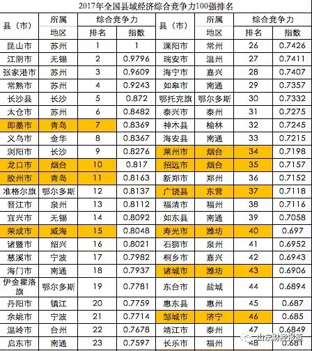 而2017年下半年,即墨撤市设区获批,成为青岛市的一个区,这或许即墨未出现在今年榜单中的原因之一。