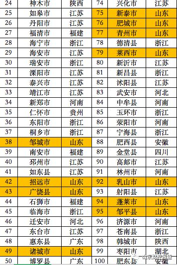 山东有不少县(市)综合竞争力稳步提升,比如:荣成、滕州、新泰、邹城。