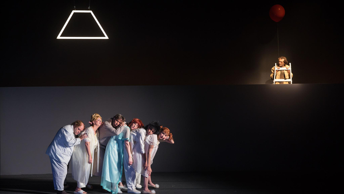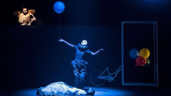 《冬季的葬礼》剧照,这次演出版本在角色死亡后会被天使拴上气球。