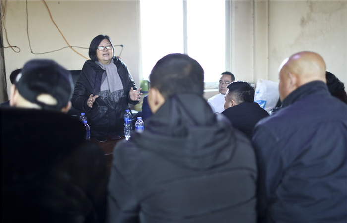 △ 重刑刑释人员创业基地,付广荣和嘉宾给重刑刑释人员做“思想教育”宣讲。