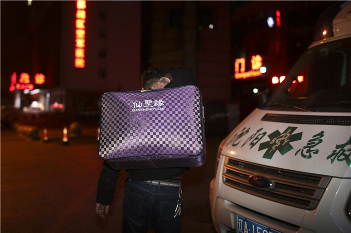 △ 殡葬师要带一瓶白酒用于遗体净身。
