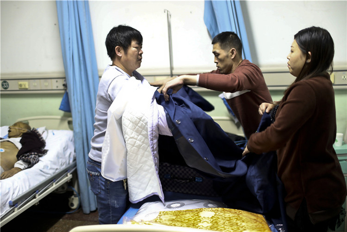 辣椒剪开了逝者的病号服,从身上缓缓褪下。接下来是净身。