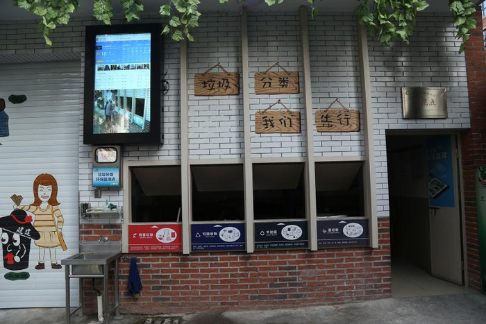 长宁区虹桥街道爱建居民区垃圾分类工作卓有成效,智能垃圾厢房引人注目。