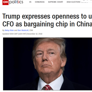 特朗普回应孟晚舟事件 CNN:他愿将此做谈判筹码