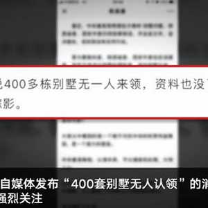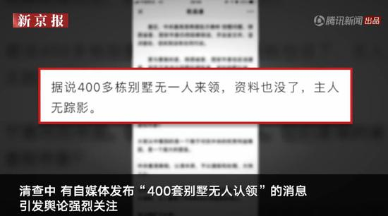 在对别墅的清查中,有自媒体发布称,其中“400套别墅无人认领”,消息发布后引发舆论强烈关注。
