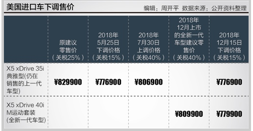 除特斯拉之外,12月15日,宝马也宣布对在中国大陆市场销售的原产于美国的BMW X5、X6,以及X5M和X6M的厂家建议零售价进行适当调整,如12月初刚刚上市的全新BMW X5建议零售价调整为人民币77.99万元起,比此前的官网建议价低了3万元。