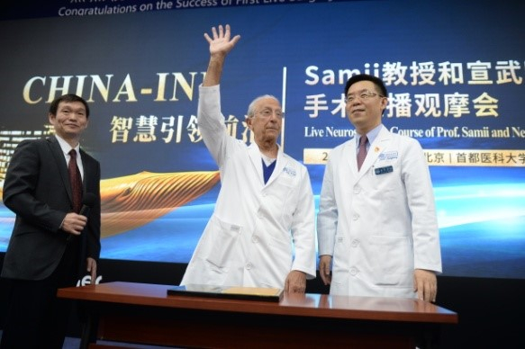 12月17日,宣武医院南院区——中国国际神经科学研究所(CHINA-INI)大楼(俗称“颅脑大楼”)正式启用。世界知名神经外科大师、世界神经外科联合会终身名誉主席萨米教授在颅脑大楼内完成了首台手术。与此同时,宣武医院神经外科的专家们分别完成了代表其专业一流水准的手术。千余名全国神经外科医生通过实时转播系统观摩了手术实况。