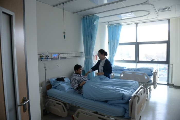 “条件很好,还有独立卫生间,很舒适。”在脊椎组病房,患者家属于战说,患者因为颈椎问题曾看过多家医院,最终需要通过手术治疗解决问题,排队排了一周,住进了新大楼。