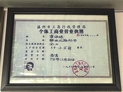 当年12月11日,章华妹被通知来到市工商局,从时任工商局个体经济管理科科长陈寿铸手中领回了一张营业执照。