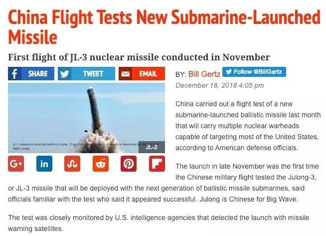 先曝出中国试射巨浪3导弹的美媒 内文硬伤在哪?