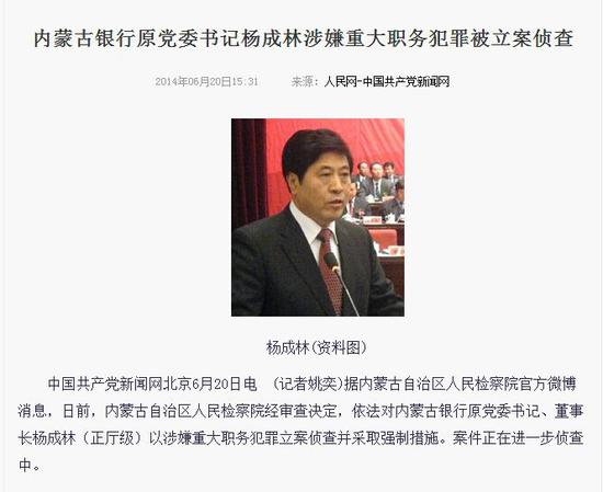 杨成林不是内蒙古银行系统落马的唯一一人。