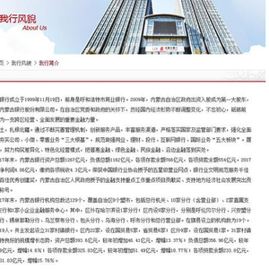 截至2017年末,内蒙古银行资产总额1267亿元。