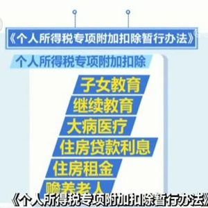 此外,大病医疗、住房贷款利息、住房租金和赡养老人等都能按照不同标准进行个税专项附加扣除。办法将自2019年1月1日起正式实施。