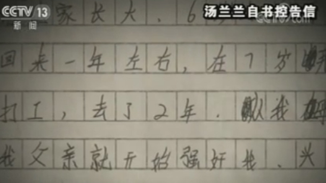 2008年10月3日,不满14周岁的女孩汤兰兰写下了一封控告信,在信中,汤兰兰举报从6岁开始,自己先后被父亲、叔叔、爷爷、姑父等亲属以及多名同村村民强奸。