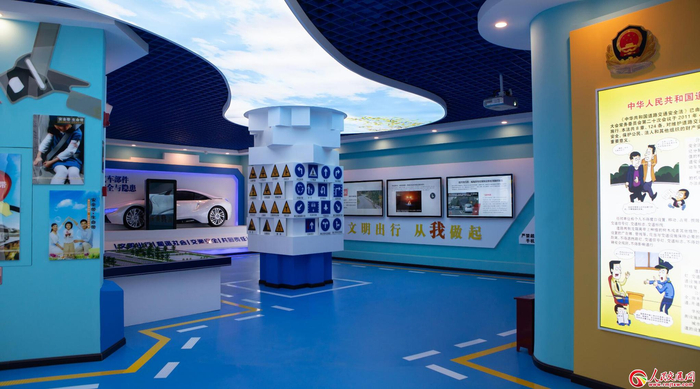 “曲靖市道路交通安全警示教育基地一期工程——警教厅”位于南海子交警支队机动车驾驶人考试中心综合办公楼二楼(原警示教育中心),于今年3月启动建设。“警教厅”占地面积约900平方米,分别由序厅“共同关注”、二号厅“血泪警示”、三号厅“平安美好”三部分组成,用新颖全面的视角、智能高端的科技手段打造了一个主题深入,意义深远,具有多维体验感受的数字化展厅。