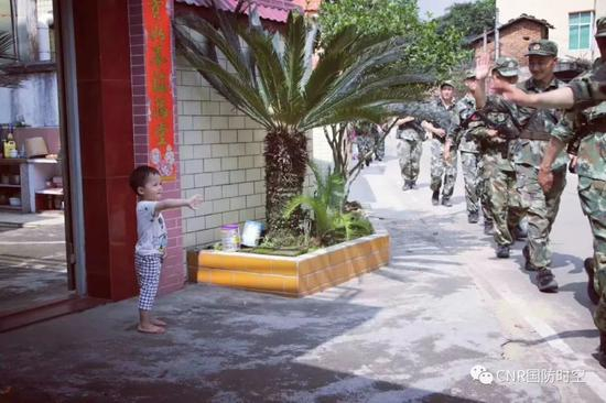 可爱的敬礼,源自小朋友对军人叔叔的敬意