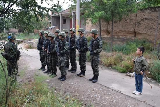 执勤队伍途径一个村落时