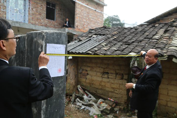 12月26日上午9时许,在陆川法院副院长何雨军的带领下,由18名干警组成的执行队伍驱车30公里来到了乌石镇吹塘村窝子队。