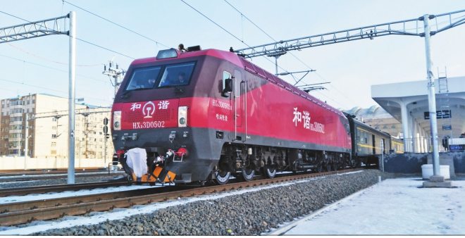 1901年投入运营的滨绥铁路,起点为哈尔滨市,终点是绥芬河。滨绥铁路是中国东北地区铁路网骨架的重要组成部分,从绥芬河站向东与俄罗斯西伯利亚大铁路接轨,是连通欧亚大陆的重要铁路通道,年货物运送能力超5000万吨。近年来,随着中俄贸易不断升温,绥芬河铁路口岸进出口运量逐年增多,2017年首次突破1000万吨。在“一带一路”倡议推动下,哈尔滨局集团公司加快打造对俄贸易大通道,通过对滨绥铁路电气化改造提升运输能力。