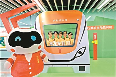 图为地铁职员欢迎乘客。