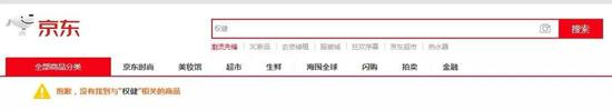 12月27日,天猫、京东、苏宁全线下架权健产品。记者在京东平台上检索“权健”发现,“页面显示:抱歉,没有找到与‘权健’相关的商品”。京东方面表示,已将平台在售的所有“权健”相关商品下架。