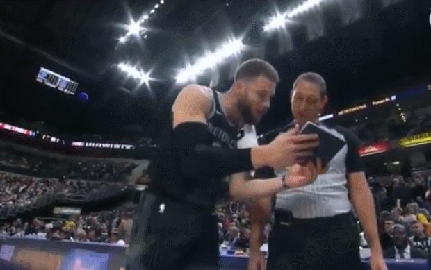 以理服人,格里芬拿iPad和裁判讨论犯规尺度