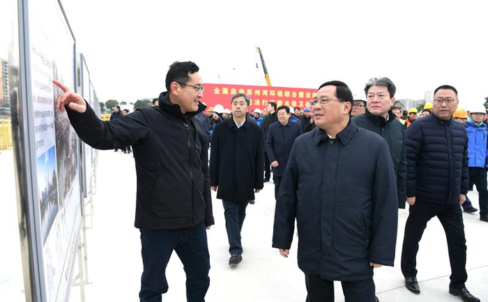 李强宣布苏州河环境综合整治四期工程全面开工。