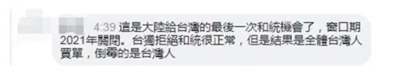 亦有台湾网友感慨良多地写道:“这或许是大陆给台湾(台当局)的最后一次机会了!”