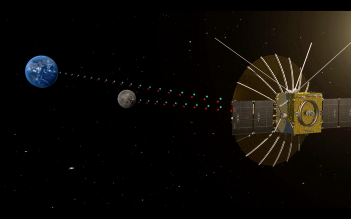 为了解决通信阻碍,我国于2018年5月21日事先发射了一颗中继通信卫星“鹊桥号”,定位于地月拉格朗日L2点附近。地月L2点位于地月球心连线上靠近月球的一侧,距月球约6.5万公里,能同时“看到”地月,成为通信地月通信“使者”。