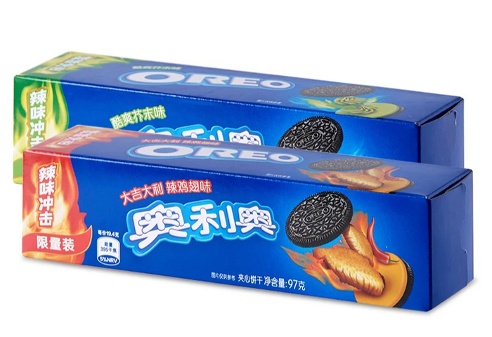 奥利奥在大家的印象中,还是那个可以“扭一扭、舔一舔”,然后蘸着牛奶吃的“白加黑”饼干。但现在的奥利奥已经不甘于平淡,辣鸡翅口味一经推出即成网红。