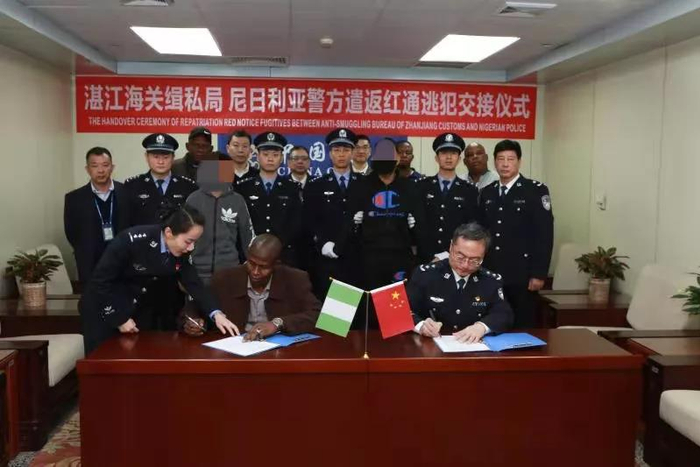 开案以来,海关缉私部门在海关总署、公安部指导和协调下,始终秉持“锲而不舍、坚持不懈、一以贯之”的态度,将欧某强等人作为重点追逃人员。2017年8月14日,提请检察机关对犯罪嫌疑人欧某强、谭某雄、谢某帮批准逮捕。同年9月18日,通过国际刑警组织发布红色通缉令。各级缉私办案单位全力做好各项追逃基础工作,密切关注外逃动态,积极排查各种线索,耐心做好家属工作,集中力量加大追逃追赃力度;2018年,先后4次前往非洲追逃,于4月20日从坦桑尼亚成功劝返另一名红通逃犯谢某帮。2018年12月21日,根据海关总署缉私局统一部署,在公安部、外交部等有关部门的大力协助下,湛江海关缉私局联合茂名市公安局,配合尼日利亚执法机关在拉各斯成功缉捕该案红通逃犯谭某雄、欧某强,这是海关缉私系统首次同时抓获两名红通逃犯。截止目前,该案共抓获外逃红通逃犯3人,境外追逃追赃工作取得历史性突破。